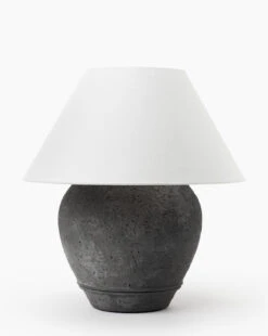With contrast in both tone and shape, our Abbott Ceramic Table Lamp is an updated take on the classic table lamp. Its round ceramic base is bold and textural, with a simple white linen shade to illuminate your space wherever the lamp is styled.