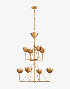 Brighten up your space with the whimsical design of the Alberto Chandelier. This double-tiered fixture shows off eight unique tulip-shaped shades, each offering an illuminating glow. With two carefully curated finish options, this chandelier blends seamlessly with any home design.Â