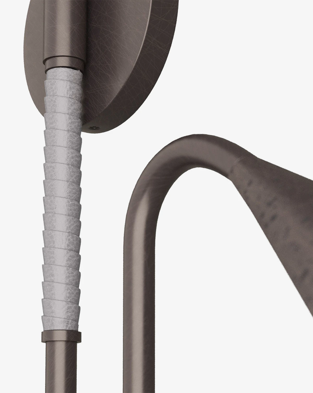 The Amerson Sconce is contemporary and versatile, sending light in two distinct directions with its dual shades. The striking form is an ideal addition to your styling with its expertly mixed materials of English bronze steel and graphite leather.