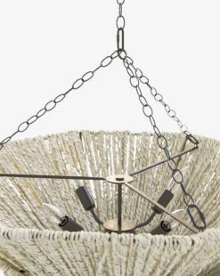 With a modern meets organic design, the Anya Chandelier is crafted from gray-stained abaca and iron in an antique brass finish. Bold and shapely, the woven material brings a subtle texture and an airy feel to any room.