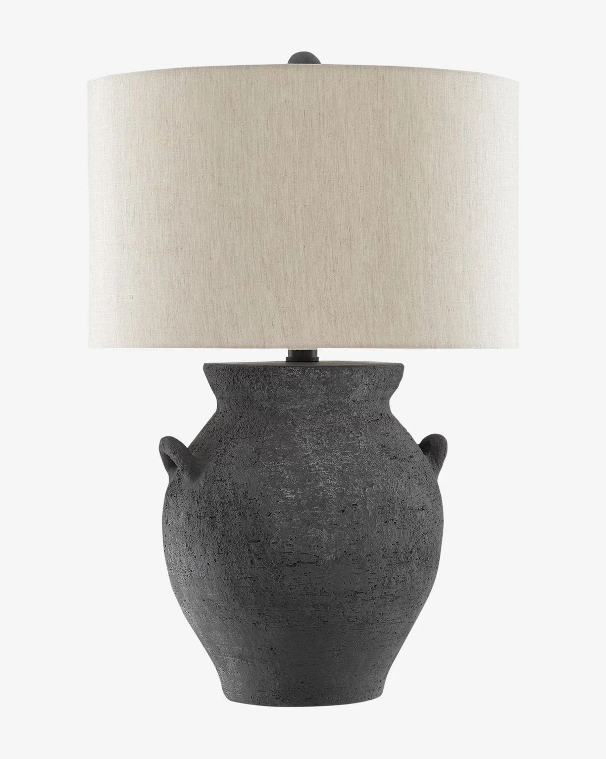 Pottery meets lighting with the unique shape of the Anza Table Lamp. Made from terracotta and finished with a black ash glaze, this fixture draws the eye from its extra dose of texture to the natural linen drum shade.