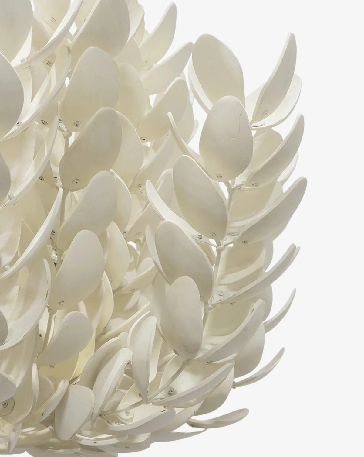 Hand-cut coco shells create the unique and beautiful shape of the Coco Magnolia Hanging Pendant. While providing ambient lighting, this piece also adds dimension and texture.