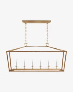 The Darlana Linear Lantern is inspired by the traditional lantern but given a modern update. Sleek lines and rattan, with a suspended candelabra, details make for an ideal contemporary pendant for the entryway, dining, or kitchen area.
