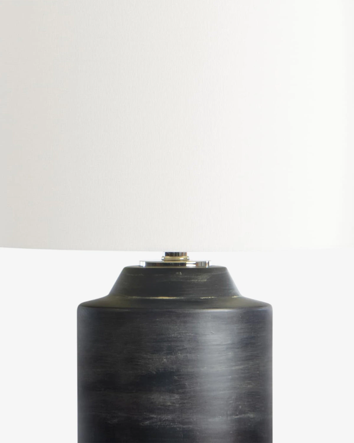 The Dayton Ceramic Table Lamp, in an ebony finish, is carefully detailed for a glimpse at its ceramic make.Β It feels both modern and natural, paired with a subtle, yet contemporary shape.