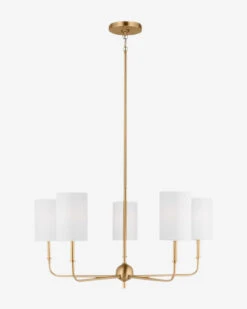 Elegant and geometric, the Foxdale Five Light Chandelier boasts thoughtful craftsmanship with its subtle details. The metal structure is finished in one of three timeless finishes to complement the white linen shades. With its classic silhouette, the chandelier casts beautiful light into your space.