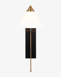 With a sleek design, the Franklin Wall Sconce exaggerates traditional shape to create a bold yet balanced piece. The long steel rod holds the striking linen shade, complete with a unique finial that ties the elements of the wall sconce together.