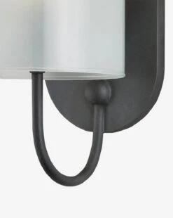 The Glacier Wall Sconce is more than your traditional sconce. Its rounded shape is made from frosted white glass for better-diffused lighting and held by curved wrought iron arms against a round backplate.