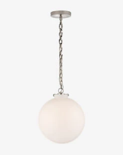 This traditional round glass globe pendant will illuminate your space with its stunning glow. We love that the chain link gives just enough edge to the shine of the glass.