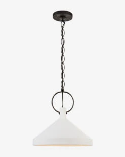 We were immediately attracted to the Limoges Pendant for its bold simplicity. Its strong conical shade is held by a large circular clasp that bring balance and subtle interplay with shaping into its design.