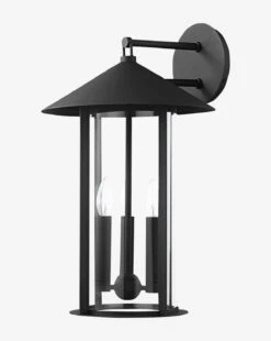 An updated take on farmhouse style, the Long Beach Wall Sconce has a slender silhouette available in three different finishes. Geometric motifs and glass panels are refined and sleek, and its lantern extends from two arms to add an impactful detail.