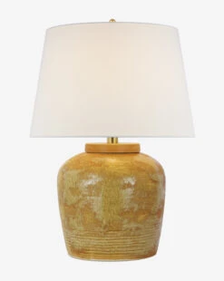 In three beautiful finishes, the Nora Table Lamp is an updated take on the classic table lamp. Its round ceramic base features subtly crafted texture around the lower half and a simple linen shade to illuminate your space wherever the lamp is styled.