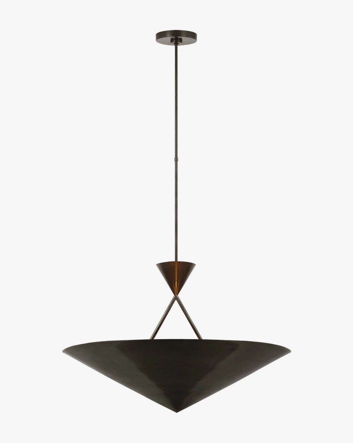 With a conical shade and slender structure, the Orsay Medium Chandelier is an updated take on metallics and modern design. Available in three finishes, the chandelier presents a bold silhouette and warm light in your home.
