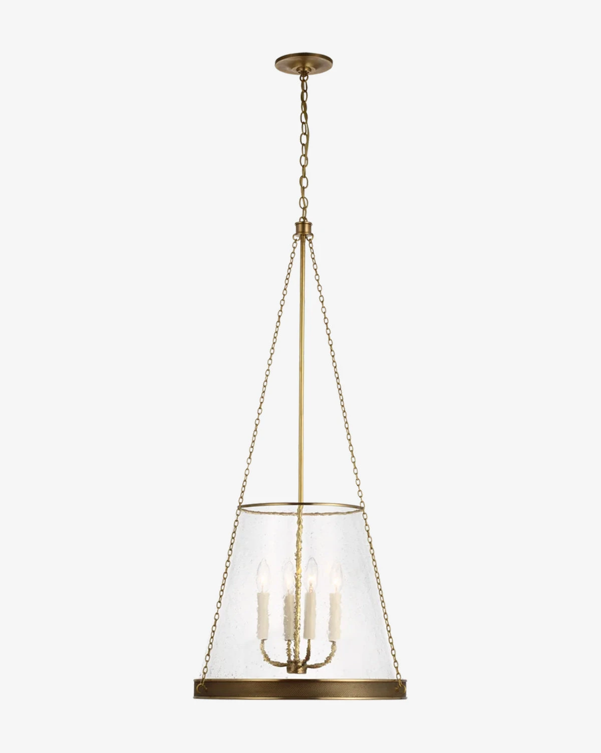 With a wide array of finish options, the transitional Reese Pendant is at home in any space. Finished with a clear shade, so you can see the stunning candelabra, or a linen shade for a more minimalist look, this pendant brightens up your home with its streamlined design.