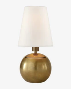 In four classic finishes, the Tiny Terri Accent Lamp makes a big statement with its elongated natural paper shade and bulbous base. Whether its layered on top of coffee table books, or used as an accent to a smaller nightstand, this table lamp brings clean, sophisticated style wherever itโs placed.