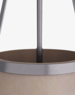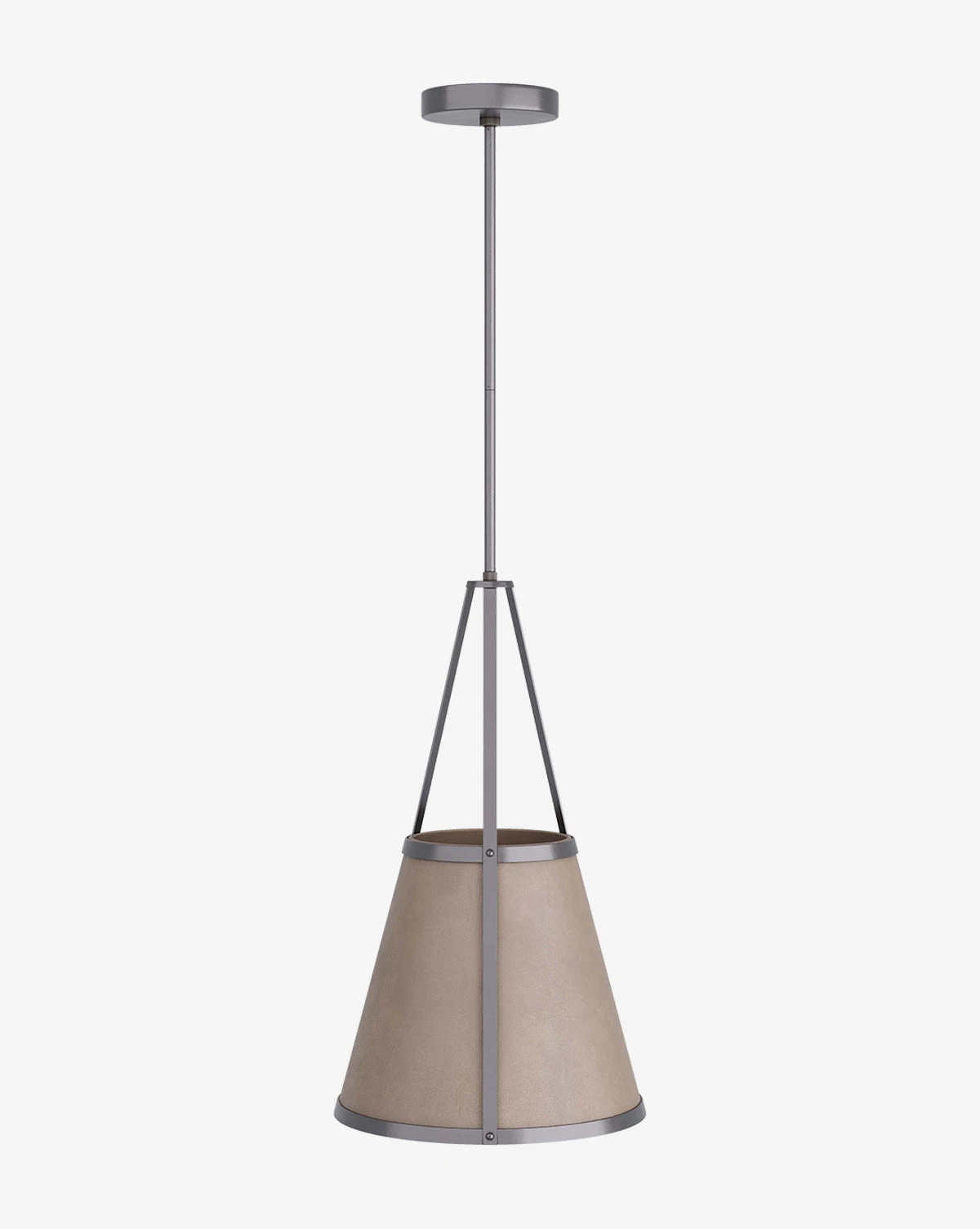 In a simple, contemporary design, the thoughtful mix of materials in the Tori Pendant gives it a unique beauty and balance. The dove leather shade is sophisticated and nuanced, providing contrast to the classic iron structure.