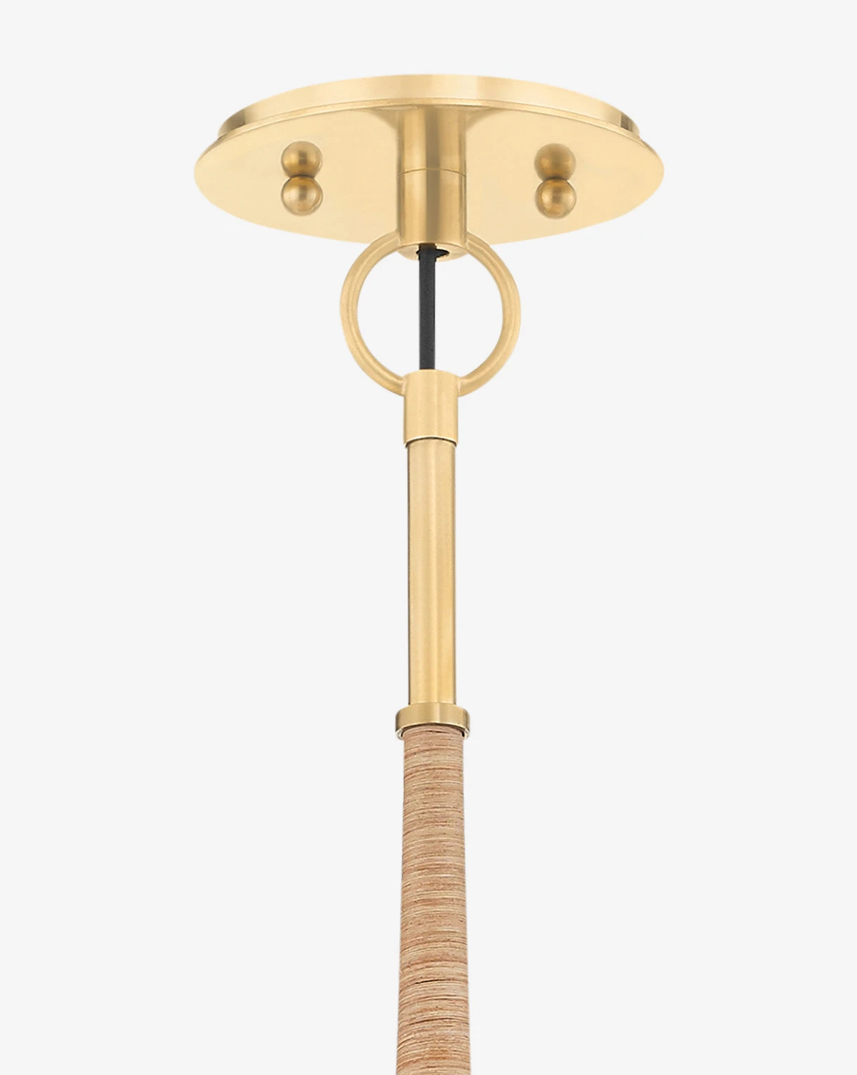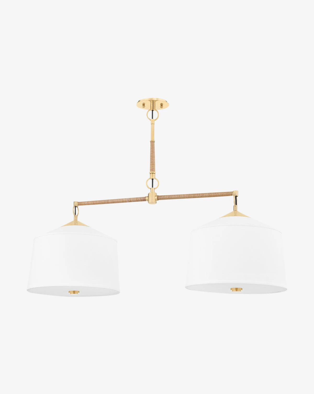 With an unmistakable silhouette, the White Plains Island Light brings new light to classic designs. Rattan-wrapped rods and a frame of aged-brass metalwork complements its dramatic drum shades, which are topped with beautiful conical finials. Its enclosed shades diffuse the light in a soft glow, creating an ambience in your space that is endearing and elegant.
