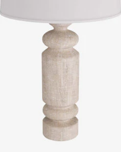 A sculptural base brings shape and an artisan element to your space with the Woodrow Lamp. Made from wood with a limewash finish to complement its off-white linen shade, this table lamp has a natural feel that elevates your consoles or side tables.